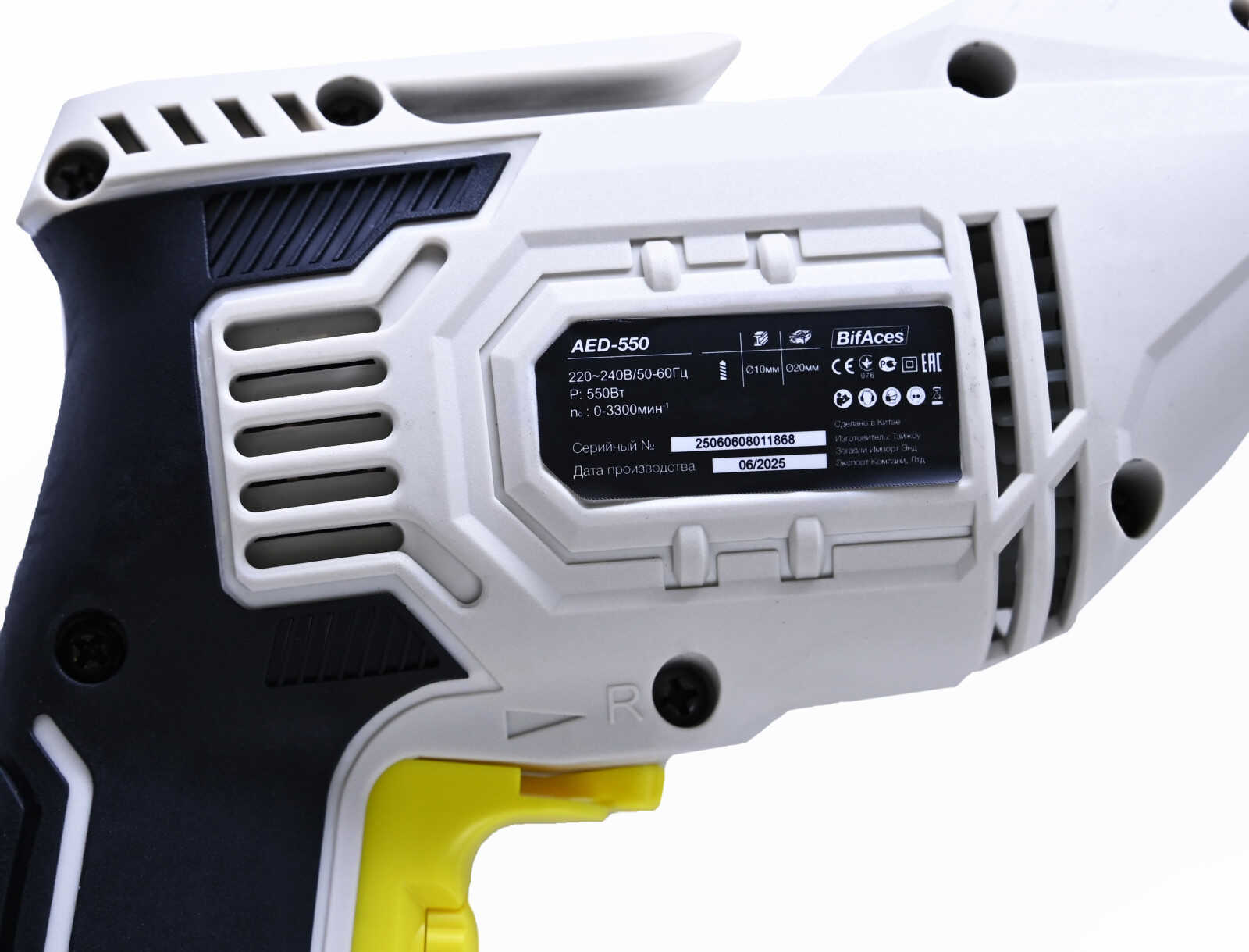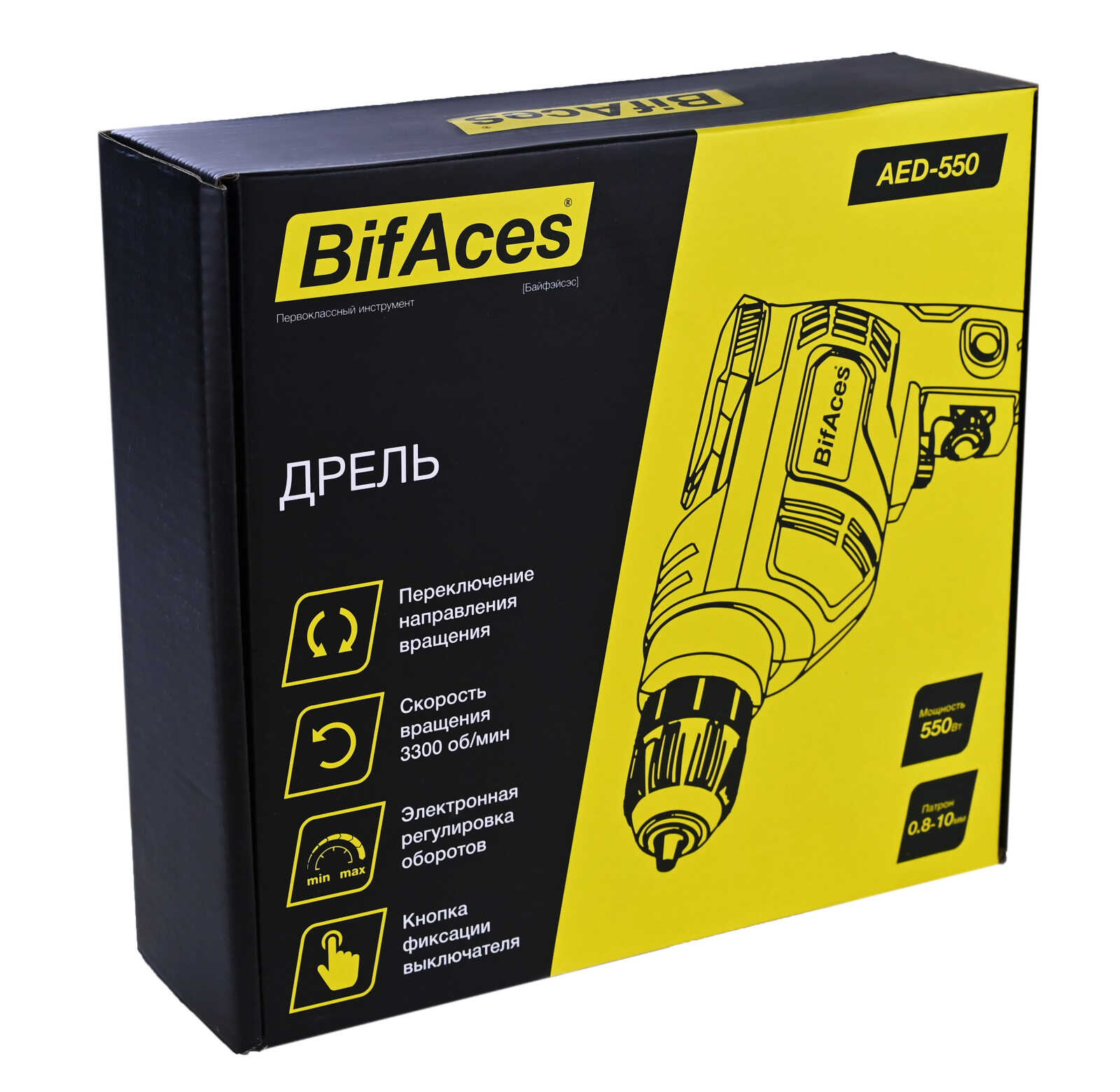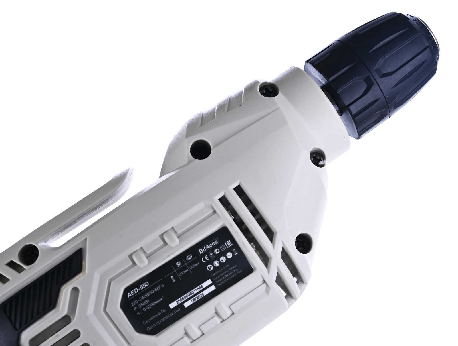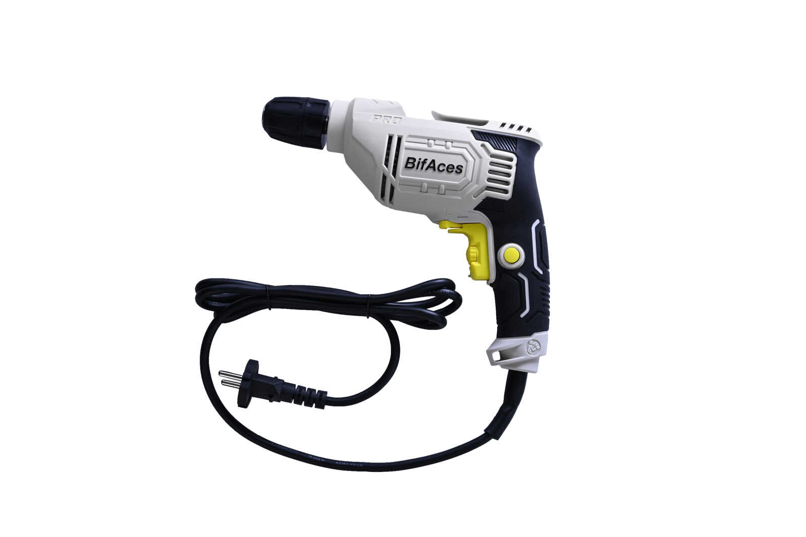 Дрель BifAces AED-550 мощностью 550 Вт, напряжение 220В, поддерживает скорость вращения оснастки 3300 об/мин. Используется для сверления металла, древесины, легкого бетона, кирпича, плитки или пластика. Дрель имеет реверс, регулировку скорости оборотов, быстрозажимной патрон, который работает со сверлами диаметром хвостовика от 0,8-10 мм, что позволяет эффективно решать различные мелкие бытовые задачи. Длинна кабеля составляет 2 м