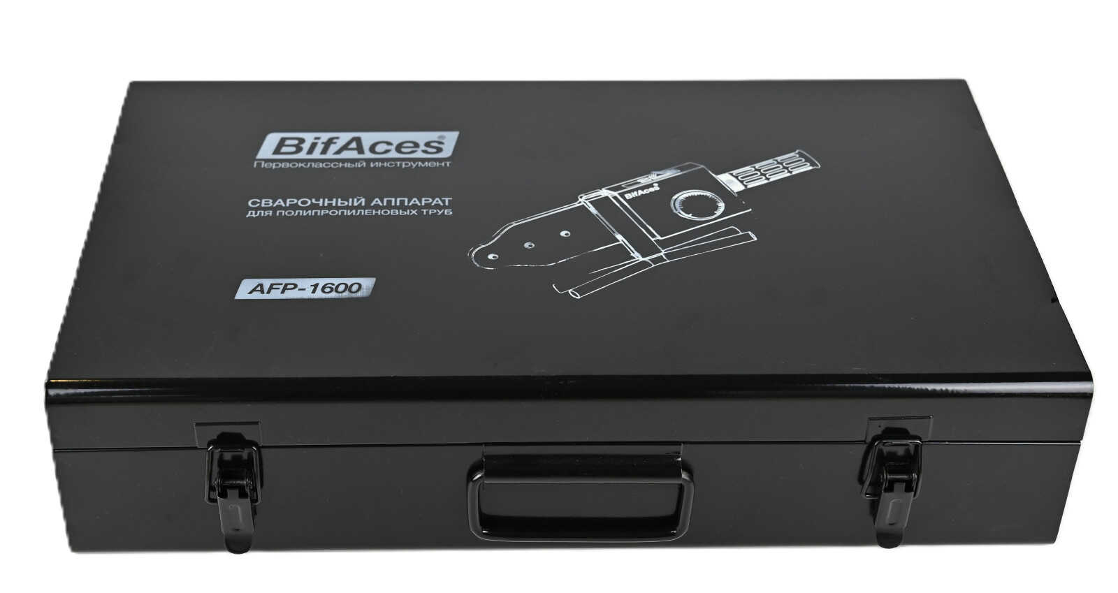Аппарат для сварки пластиковых труб BifAces AFP-1600 мощностью 1600 Вт предназначен для соединения полипропиленовых и полиэтиленовых труб диаметром 20, 25, 32, 40, 50 и 63 мм при нагреве до 300 °C.